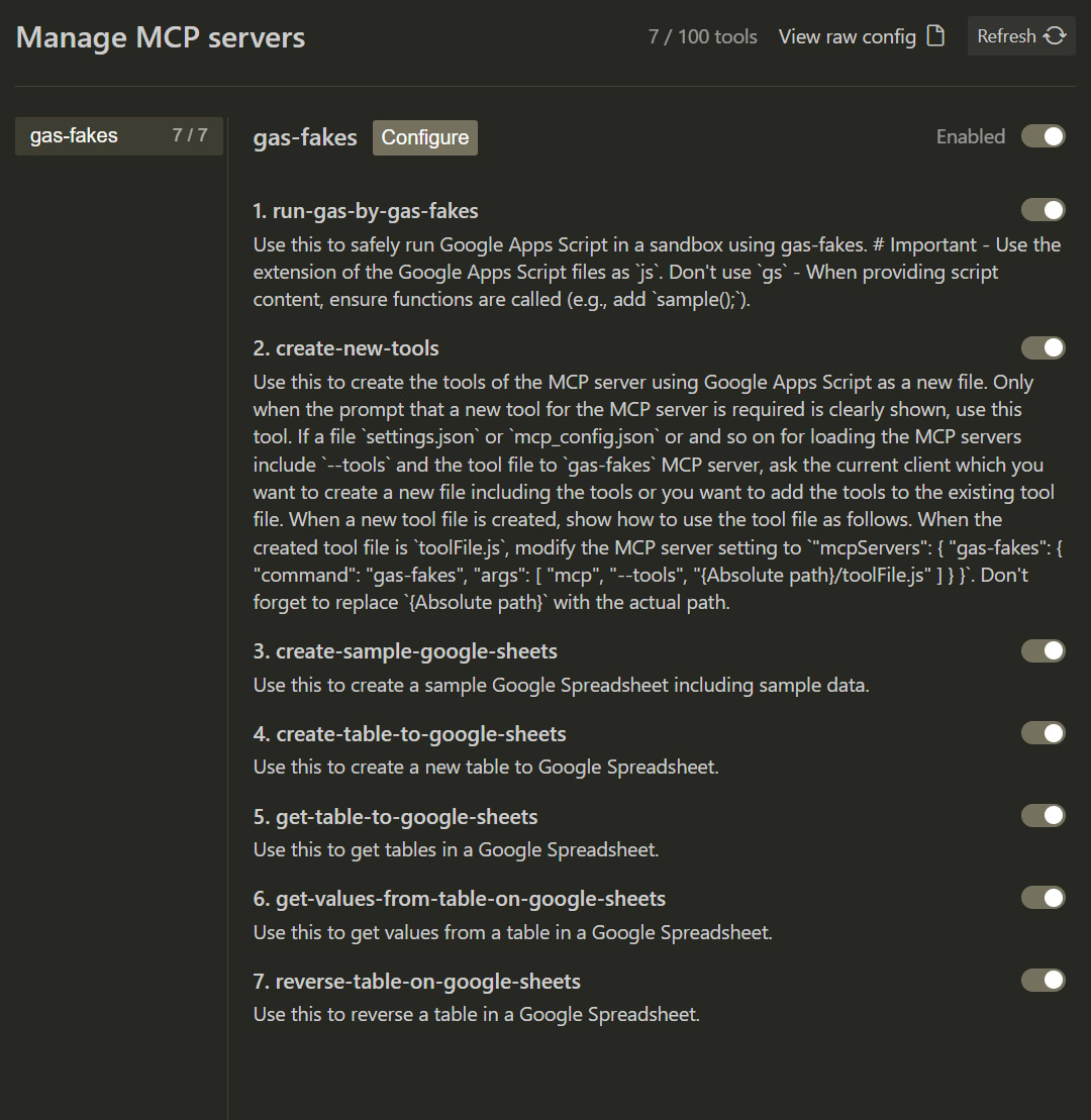 In this article, I will introduce practical examples of scripts that leverage this new functionality. We will explore how to build sophisticated and maintainable MCP tools that seamlessly integrate standard GAS libraries, significantly expanding the automation capabilities available to AI agents. The robust, modular MCP server demonstrated below was successfully tested using the Gemini CLI and Google Antigravity.