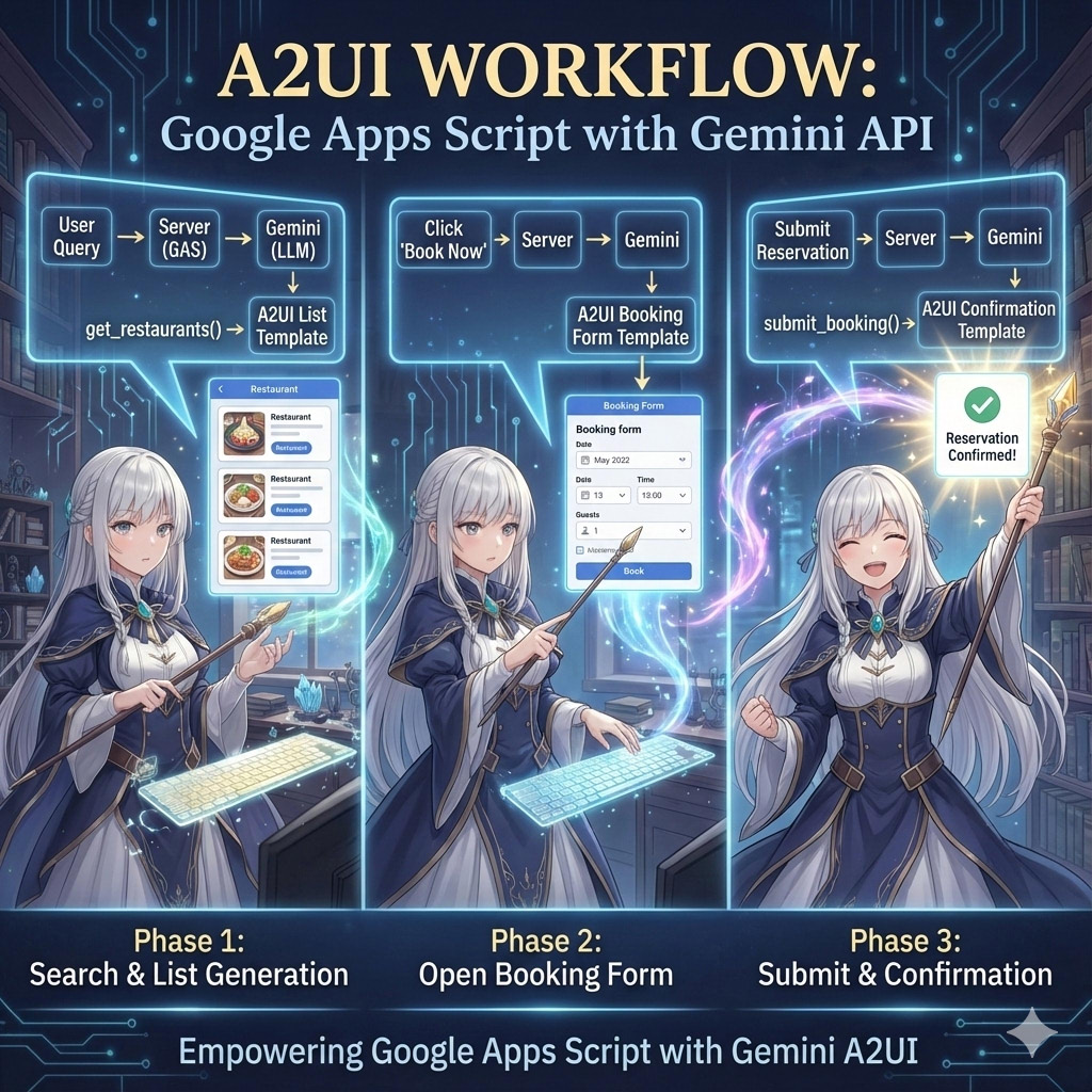This article demonstrates how to implement Google’s A2UI (Agent-to-User Interface) using Google Apps Script (GAS). By porting official Python/TypeScript examples to GAS, we show how to create dynamic, AI-generated interfaces within Google Workspace, enabling flexible business automation and interactive user experiences without complex server infrastructure.