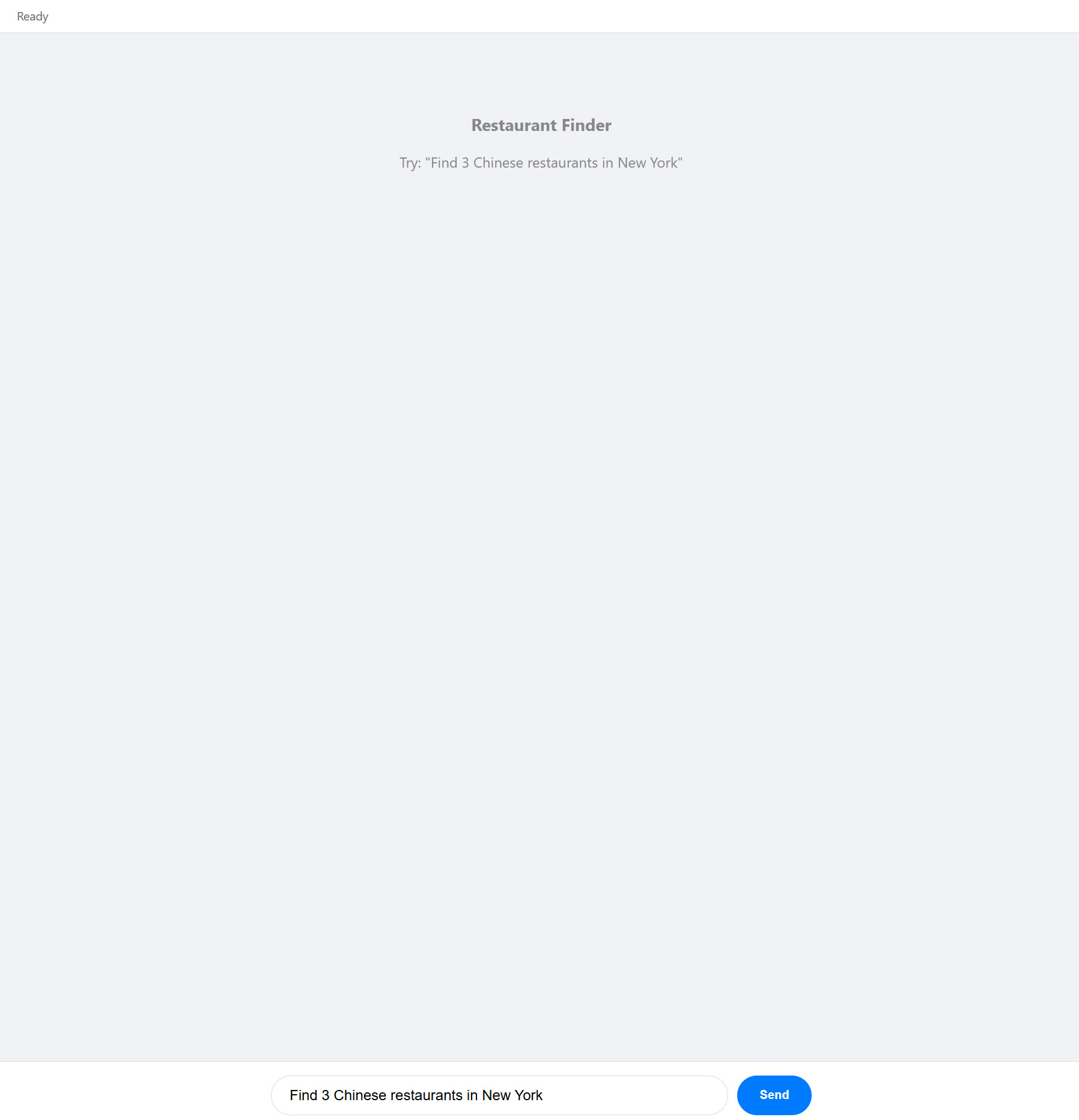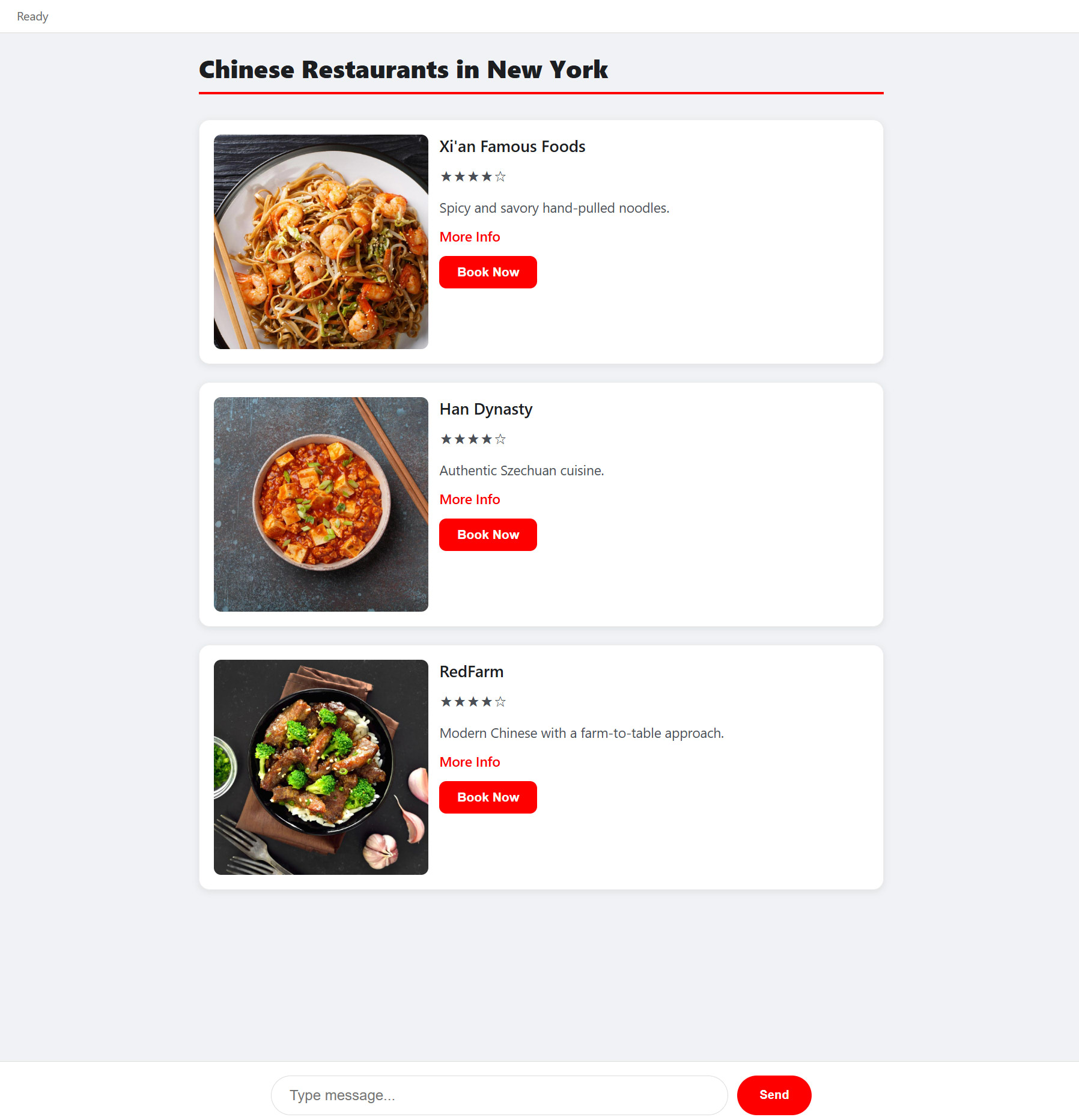 Enter the prompt “Find 3 Chinese restaurants in New York” and click the Send button. The agent will return a list of options.