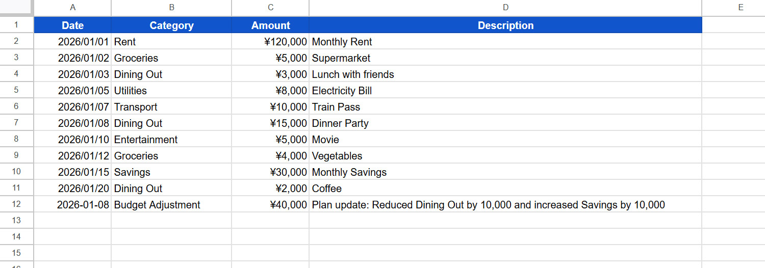 Next, enter the prompt: “What would happen if I reduced my dining out expenses by 10,000 yen and put the money towards savings?”