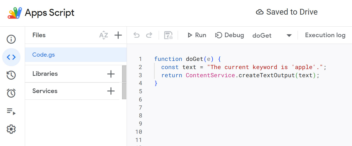 In this example, we create a simple Web App that returns a specific text string. This simulates a dynamic data source.